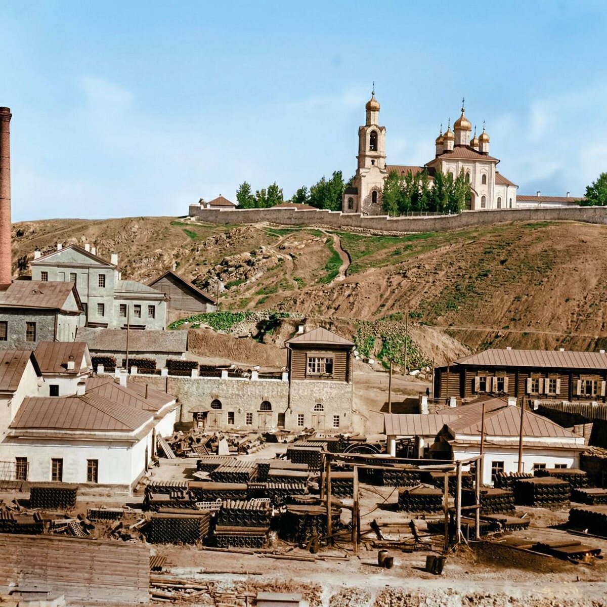 М. Прокудин-Горский. Женский Преображенский монастырь около Каменского завода. 1909 год #ФотореставрацияПГ Ещё больше фотографий: ____________ Telegram | ВК | MAX | Дзен | Пикабу