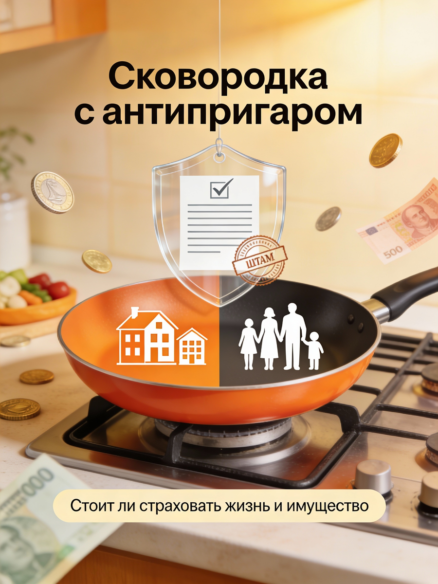 Страхование жизни и имущества — это тот самый антипригарный слой, который не отменяет риск, но помогает не «пригореть» финансово, когда что‑то пошло не по плану. В жизни регулярно случается то, чего никто не планировал: пожар, потоп от соседей, ураган, авария, болезнь или потеря кормильца. Страхование придумали как механизм, который превращает один большой удар по кошельку в небольшие регулярные взносы. По сути, полис — это договор: вы платите страховой компании взносы, она обязуется покрыть заранее оговорённые убытки при наступлении страхового случая. Чем дороже ваша «сковородка» (жильё, здоровье, доход семьи), тем болезненнее будет её «пригар» без защиты. Страхование квартиры или дома защищает конструктив, отделку, технику и иногда ответственность перед соседями. Обычно полис покрывает: пожар, взрыв, удар молнии, затопление, стихийные бедствия, хищение, умышленную порчу третьими лицами. Плюсы: Минусы: Чаще всего имущественная страховка оправдана, если квартира или дом — ваш гла