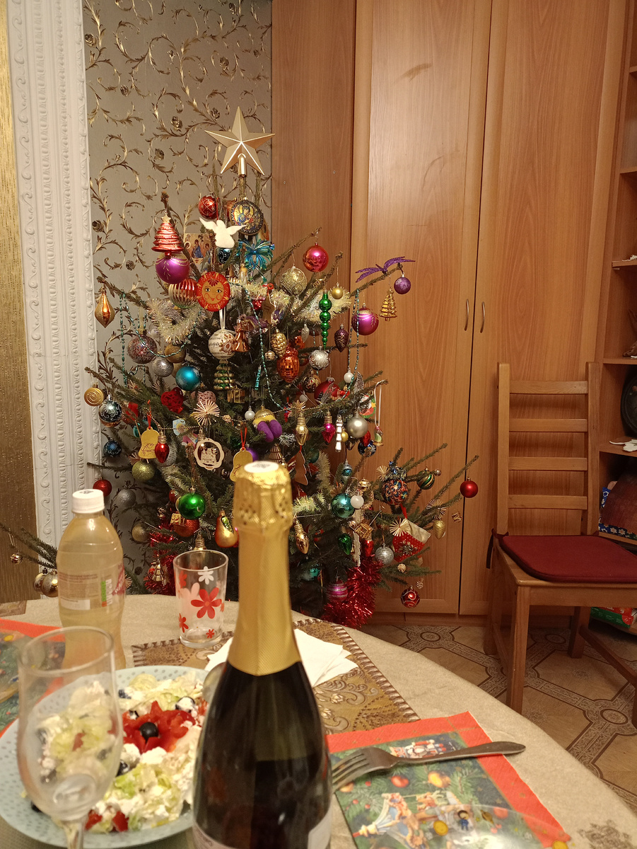 В комнате она поставила живую ëлку. И на кухне у неё ëлка маленькая была искуственная.