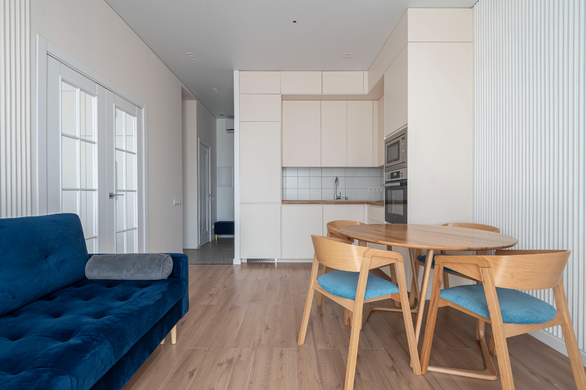 Семья Михаила, купившая квартиру в новостройке, заказала дизайн-проект в сервисе «Ремонт со СберУслугами», а после — доверила специалистам весь ремонт и обустройство. Делимся их историей и показываем, что из этого получилось. Мы купили квартиру площадью 40 «квадратов» в новостройке — под сдачу. Главным нюансом предстоящего ремонта было то, что нам нужно было его делать, а точнее, следить за его ходом, удаленно, так как живем в другом городе. Мы не специалисты в вопросах ремонта, поэтому боялись столкнуться с недобросовестными подрядчиками, как это бывало у наших знакомых. В итоге решили обратиться в сервис «Ремонт со СберУслугами» и, надо сказать, ни разу об этом не пожалели. Сначала мы заказали услугу приемки квартиры. Специалист провел осмотр жилья, нашел недочеты и подготовил заключение, и в итоге застройщик устранил все выявленные проблемы. Дизайн-проект мы тоже заказали через сервис — нам нужен был недорогой, но понятный вариант. Нам прислали все чертежи, визуализацию — и мы нагля