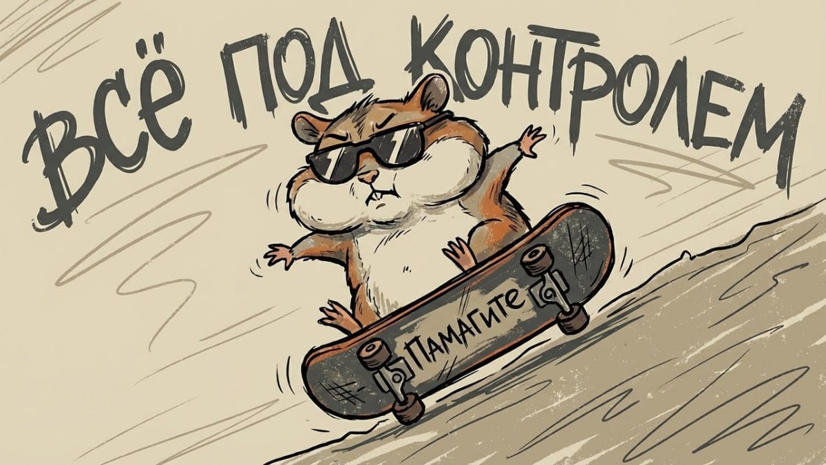 Уличный дудлинг с историей (Street Doodle Storytelling) Когда хочется создать не просто милую картинку, а целую мини-историю с юмором, динамикой и узнаваемой уличной эстетикой. Этот промпт — мастер-класс по генерации иллюстраций в стиле «признайся, у тебя тоже так», где харизма героя и контраст между действием и надписью создают идеальный виральный контент. 🔑 Ключ (Prompt): `Векторная иллюстрация в стиле уличного дудлинга (street doodle style), ручная рисовка с неровными краями (rough edges), текстура потертости, Герой: Хомяк с раздутыми щеками, который несется на скейтборде с горки и явно потерял управление, Эмоция: паника, скрытая за темными очками, Фон: Бежевый с линиями скорости , Текст на заднем плане (крупно): "ВСЁ ПОД КОНТРОЛЕМ", Текст на скейтборде: "Памагите".` 🎯 Что такое стиль Street Doodle и что он открывает: * Эстетика нарочитой неидеальности: Ключевые слова «ручная рисовка с неровными краями», «текстура потертости» дают нейросети установку на создание живой, как бы