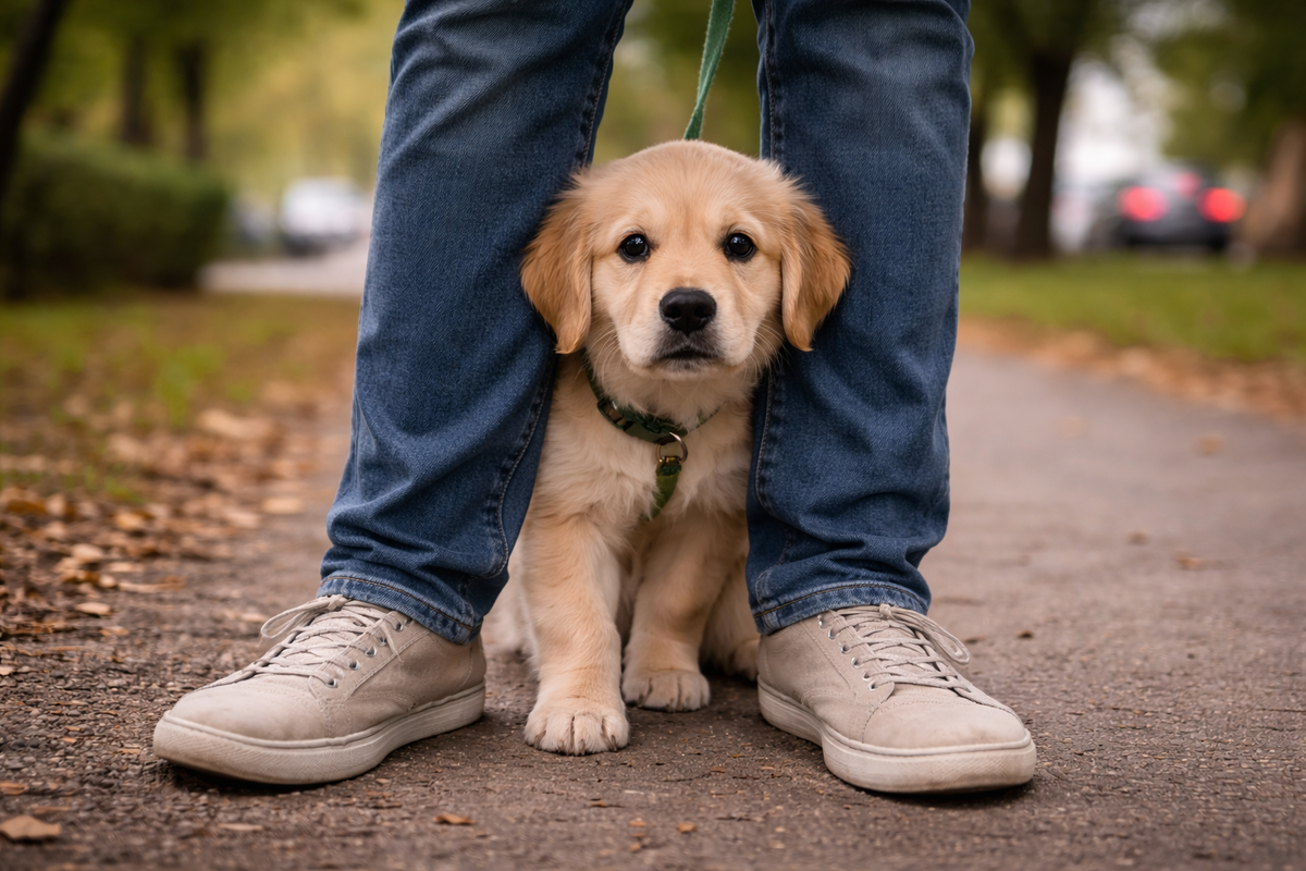 Если щенок боится людей и машин — он не «проблемный». Он учится жить в большом мире, где слишком много нового сразу.