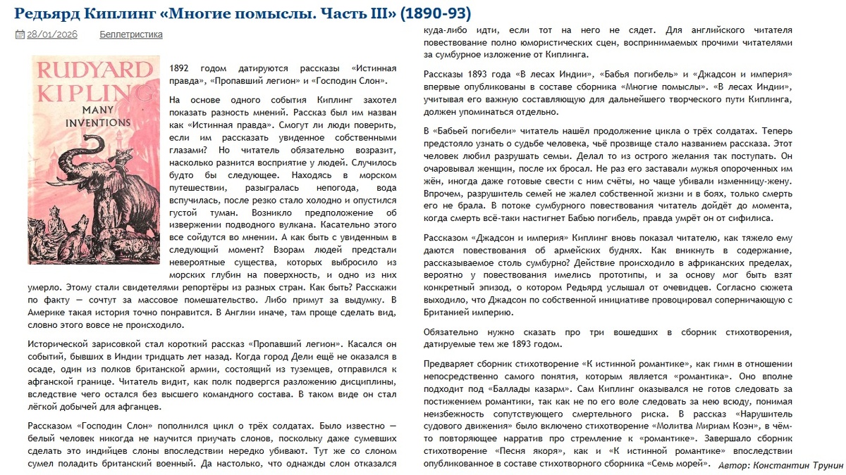 Редьярд Киплинг «Многие помыслы. Часть III» Критика