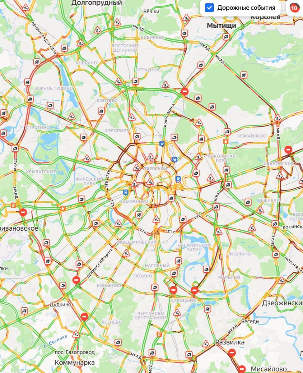 🚥 Пробки в Москве достигли 10 баллов впервые с 11 декабря прошлого года