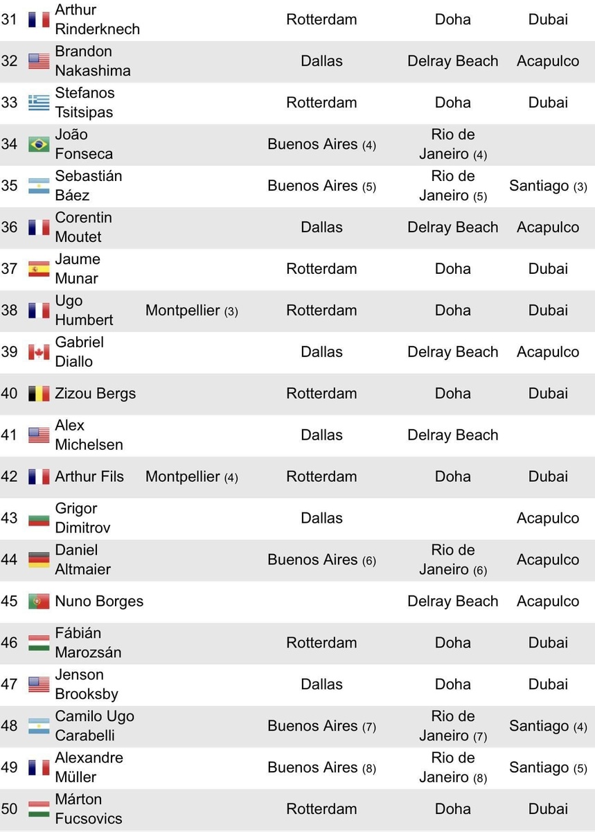 Турнирный график топ-50 ATP.