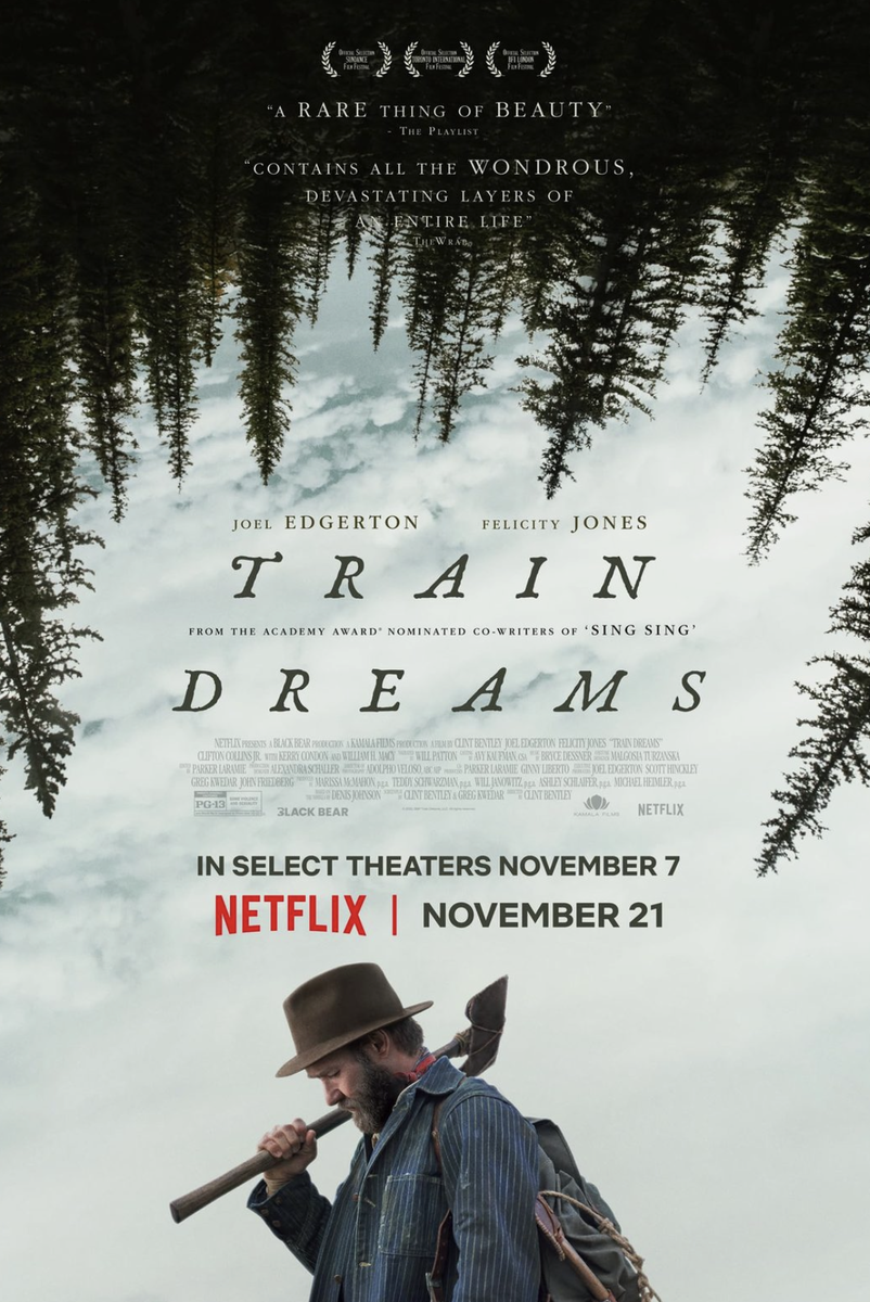 Деннис Джонсон, чьему перу принадлежит оригинальная повесть "Сны поездов", был близок, чтобы получить заветный приз - Пулитцеровскую премию в 2011-м году, но произошел курьез: все финалисты не набрали достаточно голосов, чтобы выбрать победителя. Как итог, полного признания не случилось, а сам писатель спустя 6 лет ушел из жизни из-за рака печени, в некотором роде повторив историю в духе собственных персонажей. Джонсон выступал больше в малой прозе, в центре его произведений были простые люди, которые переживали собственную жизнь как один сплошной временной поток, в котором с течением времени каждому что-то может открыться. Подобный стиль повествования при переводе на язык кино очень будет напоминать работы Терренса Малика, правда, больше раннего этапа. Даже удивительно, почему именно этот режиссер не оказался в кресле постановщика экранизации "Снов поездов". Но Малик в последние 20 лет вообще страдает какой-то мегаломанией, затрагивая вопросы чуть ли не происхождения жизни на Земле, в то время, как герой повести "Сны поездов" - это достаточно приземленный персонаж, который лишь к концу жизни обретает относительное спокойствие и понимание окружающего мира. Однако, молодой режиссер Клинт Бентли выбрал именно эту повесть для своего второго полнометражного фильма, поставленного на деньги "Нетфликс". Зная их политику, можно с ужасом представить, чего там они могут добавить, но по факту вышла неожиданно красивая и тонкая экранизация, которая вошла в десятку лучших фильмов года, в том числе получив 4 номинации на грядущем "Оскаре". Сегодня на обзоре будет эта картина с обычным разбором. ПОЕХАЛИ!