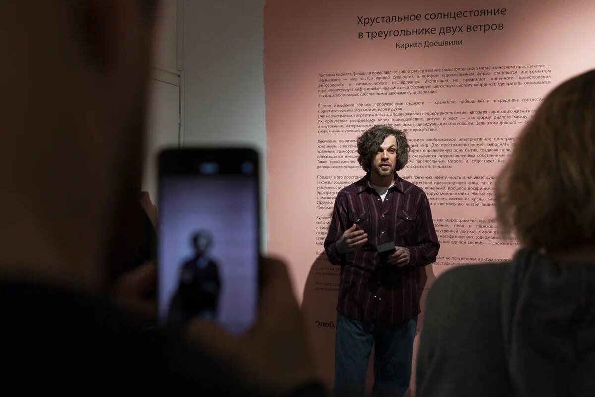 // Вокруг сугробы, а мы на открытии персональной выставки художника (ещё и красивого) Кирилла Доешвили @kirill_doeshvili // И вот, мы уже было начали говорить с Кириллом о красках — такие цвета он использует с 20го (до этого мир художника, несмотря на биографию, был разукрашен иначе). И… Кирилла отвлекли. Буквально потеряв его на несколько десятков минут, мы с Катей @soglasova_ekaterina открыли в себе и в картинах много нового. У нас там нашелся и был и Бэтмен из Германии в золотой соболиной шубе, и шоу Трумена, заяц из Алисы и отметка героя в игре Sims… мне на одной из «жёлтых картин» вообще показался момент военных эпизодов, раскрашенных цветом… и полив цветка из замаскированной пилы… подошедшие быстро включились и мы вместе обнаружили: это же хмели-сунели Если хмели сумели, то и мы сможем что там у нас ещё было? В общем, когда подошел Кирилл, он был слегка озадачен. Но ведь в этом и смысл. Каждый видит свое и себя. И миры интересные. Наша разросшаяся компания почти хором сказала, чт
