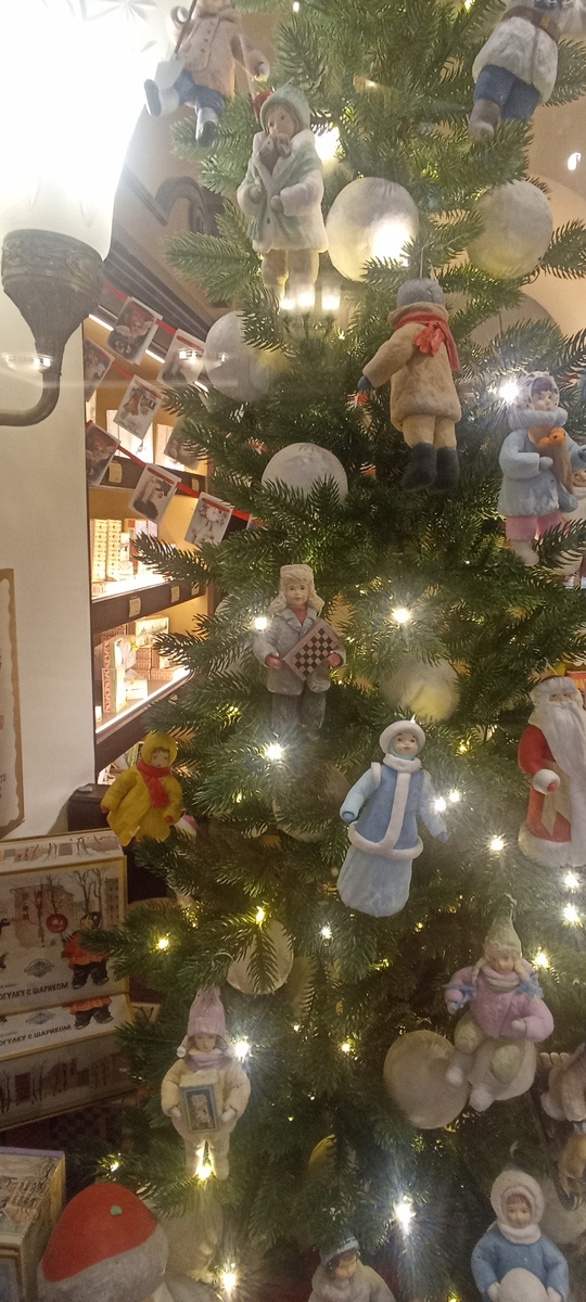 Гуляя по Москве увидел на елке фигуру шахматиста.