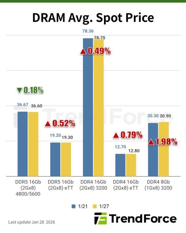 Согласно отчету TrendForce, рынок ОЗУ зашел в тупик. Из-за завышенных цен производители техники приостановили закупки современных чипов, однако общий дефицит предложения удерживает стоимость на пике. Похожая ситуация и с NAND-памятью — спрос слабый, но цены всё равно ползут вверх. На этом фоне неожиданно «воскрес» старый стандарт DDR3 — это единственный сегмент, где сейчас есть реальная активность, так как покупатели ищут дешевую альтернативу.