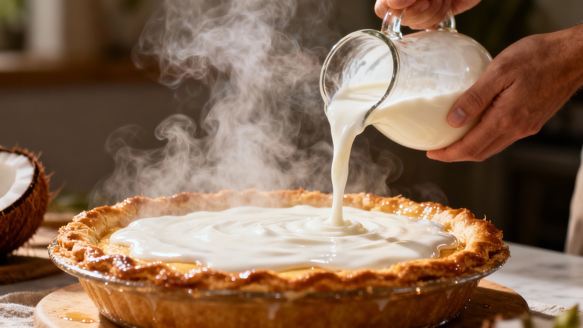 Самый важный момент наступает сразу после выпекания. Горячий пирог не вынимают из формы, а медленно заливают сливками, поливая тонкой струйкой, словно ухаживая за комнатным растением. Сливки постепенно впитываются, делая корж влажным и насыщенным. После этого пирог оставляют в форме еще на 10 минут, чтобы пропитка распределилась равномерно.