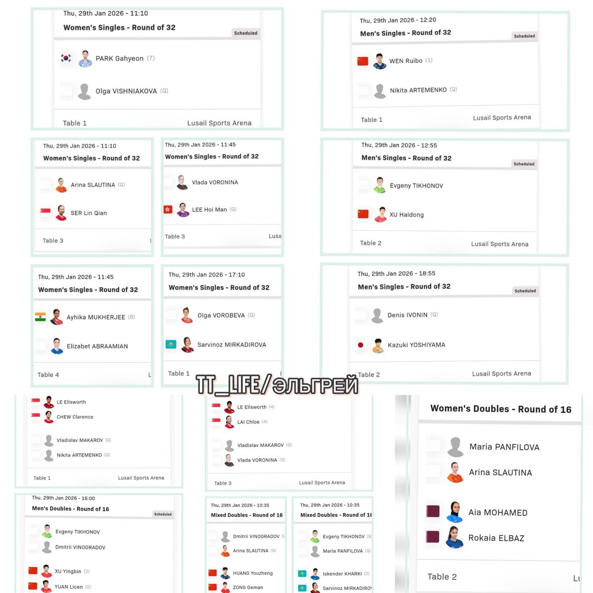 ✊ Завтра утром начнутся противостояния россиян в основной сетке WTT Feeder Doha 2026