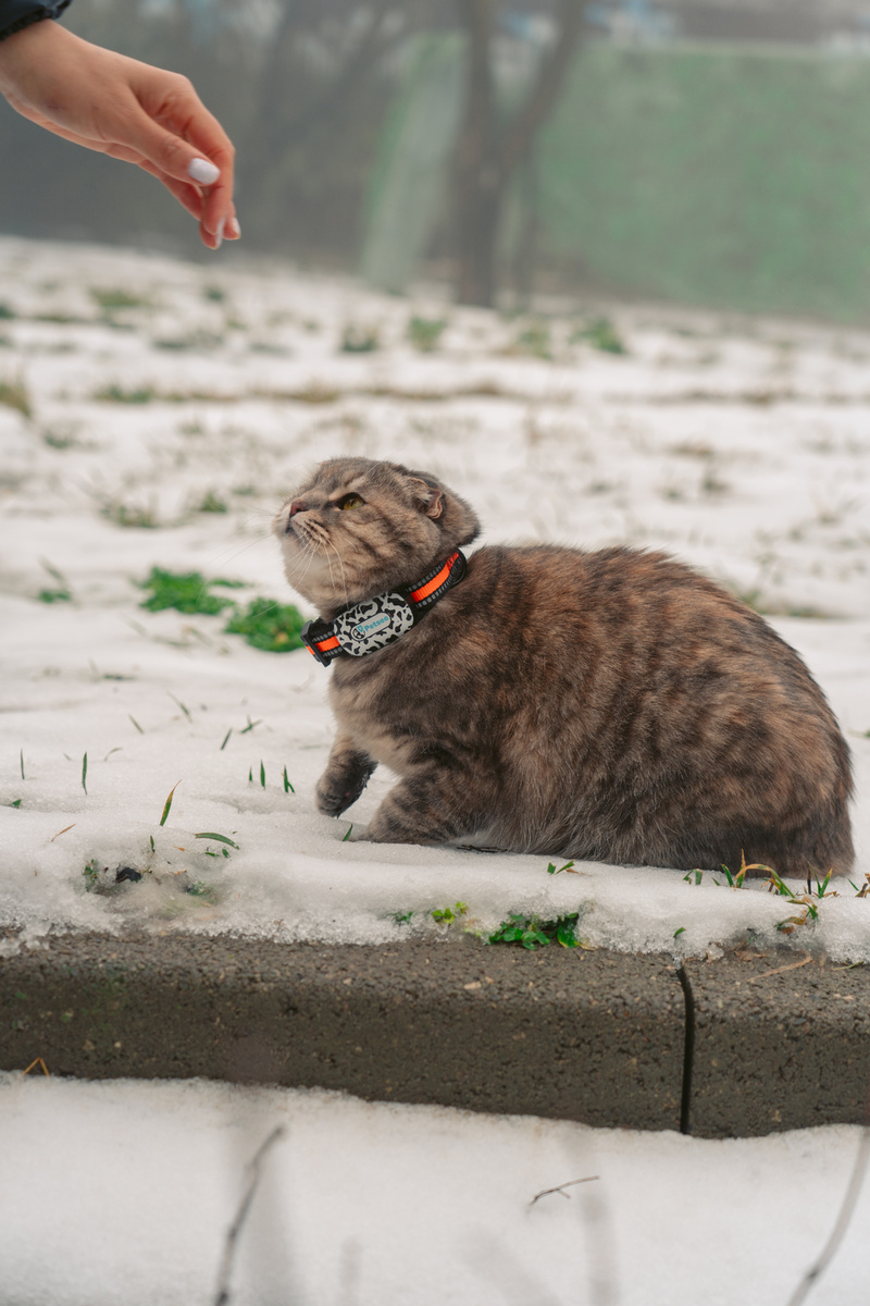 Милая Мурка — домашняя, панически боится лифтов, но не убегает далеко. AirTag на ошейнике помогал найти её в квартире и под диваном — быстро и удобно.