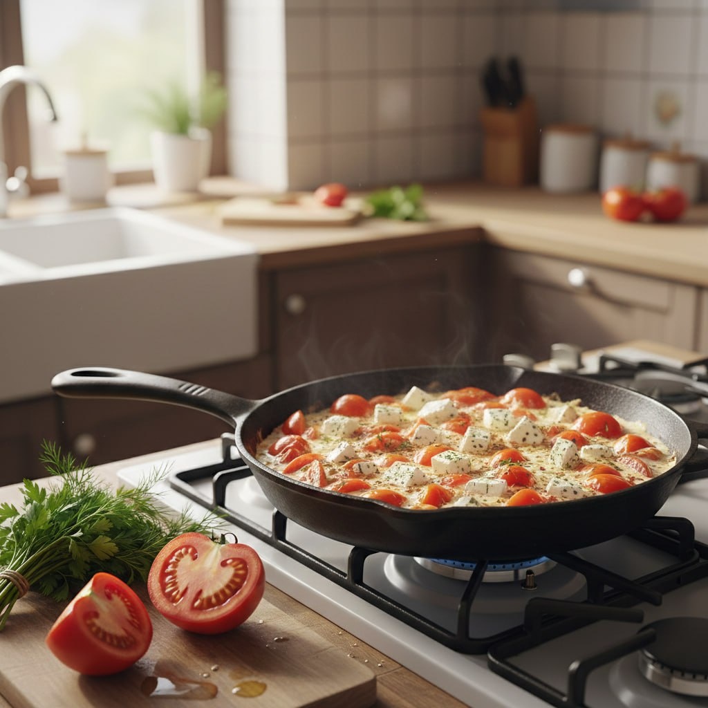 или Таматар панир малай На самом деле яичницей тут и не пахнет. Но по вкусу и консистенции блюдо — жаренные помидоры с сыром очень напоминает омлет с помидорами. Вегетарианское, готовится буквально за 5 минут — отличный вариант, когда хочется чего-то тёплого, сытного и без лишних заморочек. В классическом аюрведическом рецепте используется панир — домашний сыр. Мы же без потери качества и времени заменим его обычным адыгейским. Ингредиенты (на 4–6 персон): 450 г адыгейского сыра 6 средних помидоров 3 ст. л. топлёного (гхи) или растительного масла 2 ч. л. семян кумина (зиры) 1 ч. л. куркумы 2 ч. л. соли 1/2 ч. л. молотого чёрного перца 2/3 чашки сметаны (150 мл) 2 ст. л. нарубленных листьев кориандра или петрушки Приготовление: 1. Адыгейский сыр разломайте на крупные кусочки размером примерно 2,5 см. 2. Помидоры вымойте и разрежьте каждый на 8 долек. 3. В кастрюле с толстым дном или в сковороде среднего размера нагрейте топлёное (гхи) или растительное масло. 4. Всыпьте семена кум