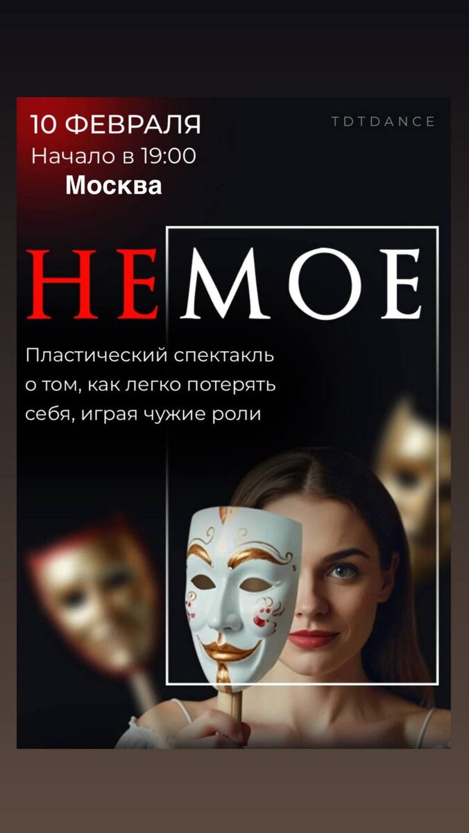 Уже совсем скоро, 10 февраля, — событие, к которому я готовлюсь целый год… Это спектакль «Не Моё» Это не просто театр — это терапевтический театр. Поэтому в зале на моих спектаклях никогда не бывает «случайных людей». Если вы оказались в зале или думаете туда пойти, значит, вам это точно нужно. И чтобы как можно больше таких людей попали в зал, я хочу сделать небольшой, но важный конкурс. Итак… ✨ КАК ВЫИГРАТЬ ЛЮБОЙ МОЙ КУРС В ЗАПИСИ БЕСПЛАТНО? 1. Сделайте скриншот афиши спектакля (прикрепила её к этому посту). 2. Выложите его к себе в сторис Telegram и добавьте в описание ссылку на мой канал: https://dzen.ru/id/6474a6e66b9b2b293f4279d8 3. Пришлите скрин вашей сторис сюда, в комментарии. Среди всех участников я случайным образом выберу победителя и подарю любой мой курс в записи на выбор! Благодаря вашим сторис о спектакле узнают те, кому он сейчас особенно нужен. ♥️