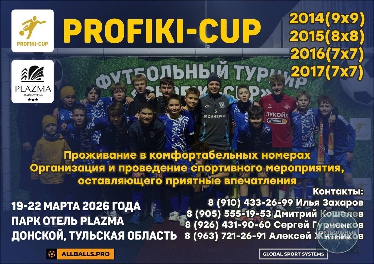 Донской, Тульская область). ⁃ Награждение каждого участника соревнований ⁃ Награда лучшего игрока матча MVP ⁃ Топовая статистика каждого игрока турнира в AllBalls.pro ⁃ Прямые трансляции матчей ⁃ Качественное судейство ⁃ 8-10 команд-участниц ⁃ 5-6 игр у каждой команды Ждём вас на поле! Пусть победит сильнейший! С уважением, организаторы турнира PROFIKI CUP! Для получения подробной информации: +7-910-433-26-99 Илья +7-905-555-19-53 Дмитрий +7-963-721-26-91 Алексей +7-926-431-90-60 Сергей --- #ФутбольныйТурнирМарт2026 #ФутбольныйТурнирЦентральнаяРоссия2026 #ФутбольныйТурнирТульскаяОбласть2026 #ФутбольныйТурнирДонской2026 #ФутбольныйТурнирТульскаяОбласть2014гр #ФутбольныйТурнирТульскаяОбласть2015гр #ФутбольныйТурнирТульскаяОбласть2016гр #ФутбольныйТурнирТульскаяОбласть2017гр Источник: https://vk.com/wall-139145017_3515