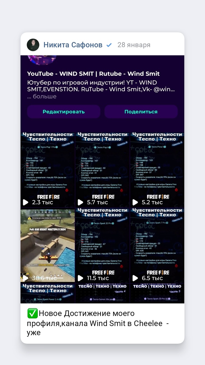 ✅Новое Достижение моего профиля,канала Wind Smit в Cheelee