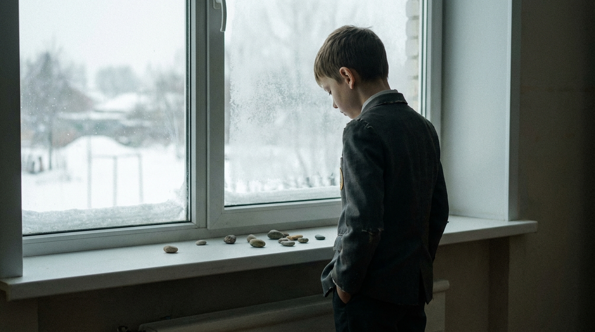 Камушки лежали на подоконнике у кабинета труда – гладкие, речные, размером с ноготь большого пальца. Кто-то аккуратно выкладывал их в ряд, и ряд этот тянулся от края до края, огибая горшок с засохшей геранью.