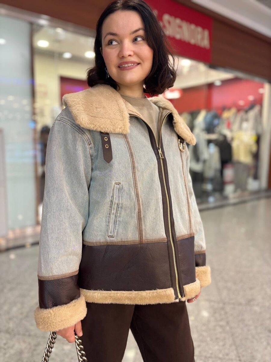 Силуэт Oversize. Спущенная линия плеч. Отложной воротник из искусственной овчины трансформируется в воротник стойку с помощью ремня с пряжкой. Боковые карманы с листочками. Застежка на молнию. Ткань верха 100% хлопок. Наполнитель синтепон. Размеры уточняйте* 18.800₽