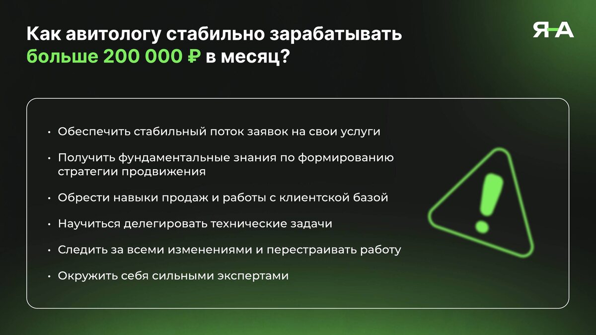 ? Привет, коллеги. Сегодня ещё раз хочу затронуть тему эффективности Авитологов. И речь не про результаты РК и довольных клиентов. Я говорю про уровень дохода. Вчера на вебинаре я делился результатами опроса из моего блога, которые говорят о том, что большинство Авитологов не могут заработать больше 50 000р в месяц. И обсуждал с участниками, почему так происходит. Что же отличает Авитологов, зарабатывающих больше 200к в месяц от остальных? Давайте разбираться. Умение обеспечить себя стабильным потоком заявок Как ни странно, многим экспертам это дается тяжело. А ведь Авитолог без заявок - это «сапожник без сапог». Фундаментальные знания по формированию стратегии продвижения Без этого навыка у клиентов не будет результата, а значит они не будут продлеваться. Казалось бы, это один самый сложный пунктов в работе Авитолога. Но у многих более менее опытных спецов с этим проблем нет. Навыки продаж и работы с клиентской базой И первичная продажа и пролонгация, в первую очередь, завис