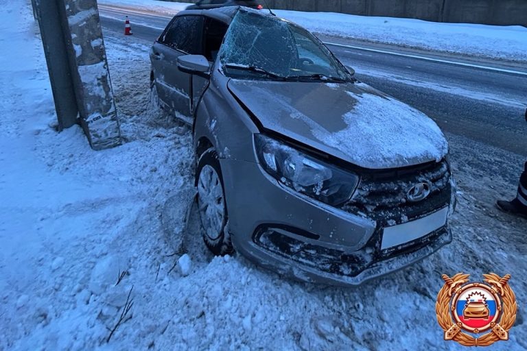 В Твери на улице Туполева легковушка врезалась в столб, есть пострадавший