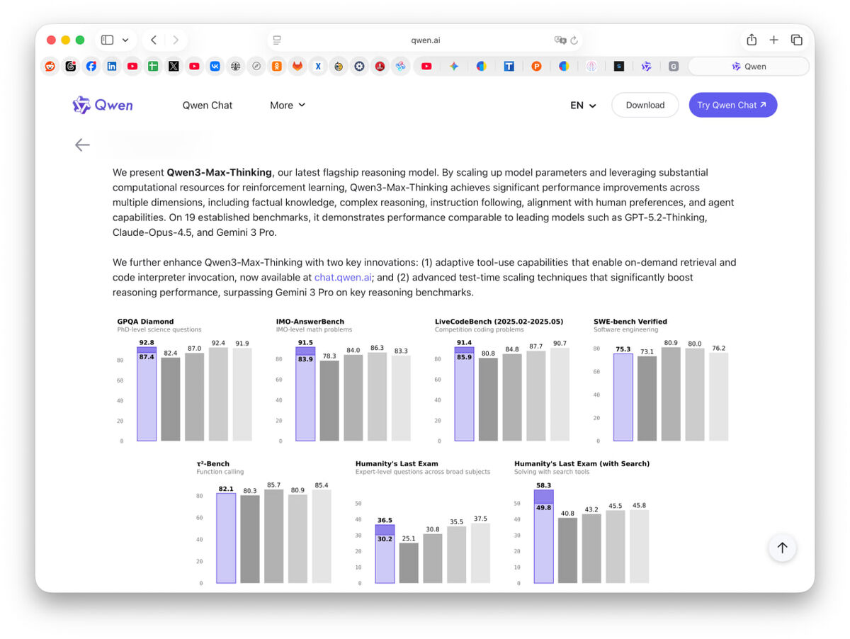 Alibaba выкатила Qwen3-Max-Thinking, и на её фоне GPT-5.2 с Claude-Opus-4.5 выглядят слегка отстающими в развитии