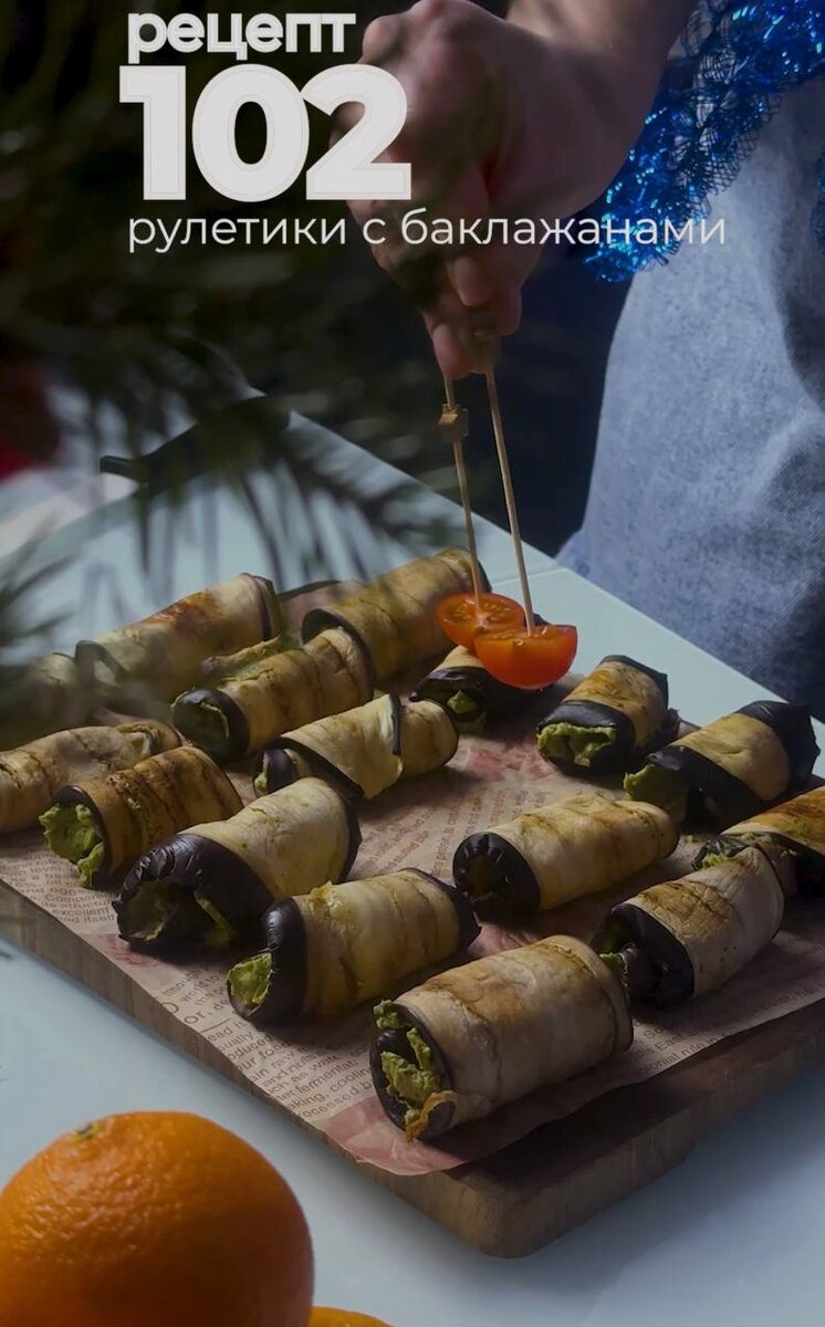 🤩🤩🤩🤩🤩🤩 Рулетики из баклажанов с пастой из авокадо #рецепт102 СПИСОК ИНГРЕДИЕНТОВ: • Баклажан 1шт. • Авокадо 1шт. • Черри 4-5шт. • Чеснок Ізуб. (можно без него, если не любите) • Зелень (любая, у автора мята и базилик) • Грецкий орех + фисташки (не солёные) • Сок лимона 2 ст. л. • Растительное масло (у автора масло авокадо) Специи: • Смесь сухих трав, сухой чеснок, пряная соль, перец. СПОСОБ ПРИГОТОВЛЕНИЯ: • Баклажан разрезать вдоль тонкими полосками. Посыпать крупной солью и оставить на 15мин. • Грецкий орех(предварительно замочить на ночь)чуть обжарить на сухой сковородке. Затем растолочь до мелких кусочков вместе с фисташками. • В блендер авокадо, зелень, чеснок Ізуб.,сок лимона, пряную соль, перец. • Баклажан промыть от соли, просушить бумажным полотенцем. • Выложить на смазанную маслом бумагу для выпечки. • Сверху баклажан чуть смазать маслом авокадо с помощью кисточки. • Посыпать смесью трав и сушеным чесноком. • Запекать 180С -15мин. • Баклажану дать немного остыть, зате