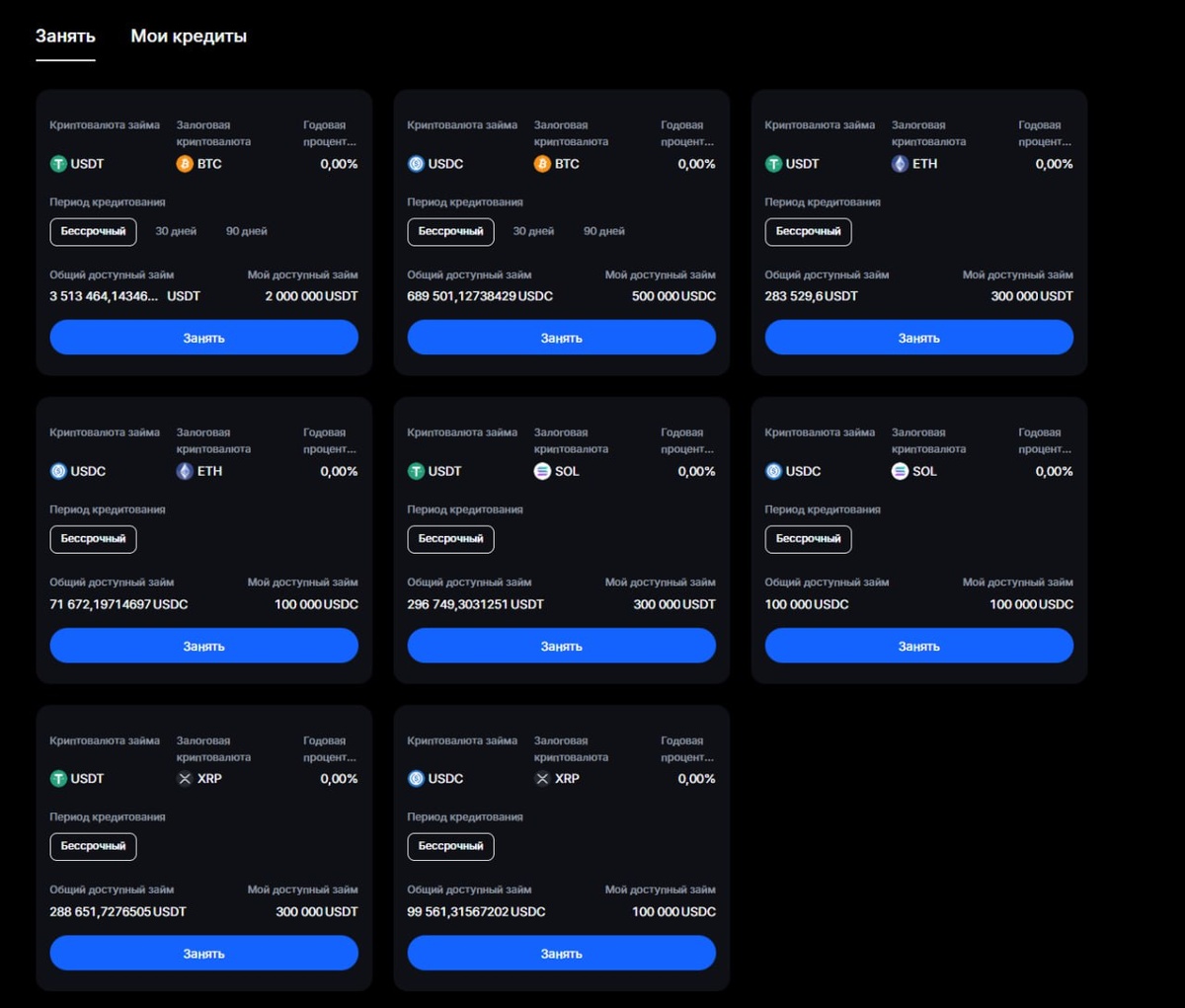 ! С 27 января по 27 февраля вы можете брать займы в USDT или USDC под 0% годовых, используя в качестве залога: BTC, ETH, SOL и XRP. 🔵 Без процентов в течение промо-периода 🔵 Без фиксированного срока погашения 🔵 Используйте средства для спота, фьючерсов и Earn 🔵 Сохраняйте позиции и получайте ликвидность Подробнее ❔ Имба, если строчно нужны USDT можно без процентов взять на мексе теперь