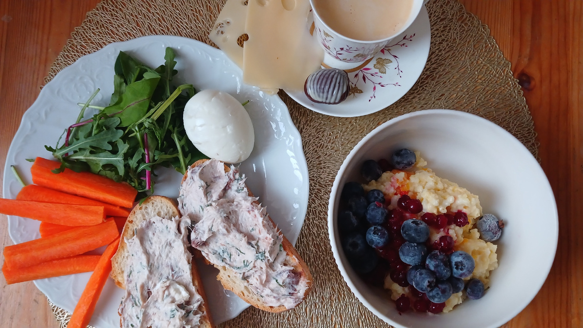 Обещала вам выложить меню с расчетом калорий и БЖУ. Это мое меню за 24 января. 566 ккал, БЖУ 24,4 г/25/60 каша пшенная с тыквой (молоко-вода 1:1) - 170 г ягоды - 50 г бутерброды с рыбным риетом: чиабата - 47 г, риет - 50 г, 1 яйцо, салат Месклам - 10 г, морковь - 50 г сыр Маасдам 15 г, конфета 11 г + чашка кофе без сахара 527 ккал, БЖУ 34,7 г/20,8 г/49,8 г тыквенный суп-пюре 250 г+ семечки очищенные 3 г чиабата 25 г, риет рыбный 25 г, кальмары отварные 105 г после обеда: апельсин -133 г, сыр Маасдам 27 г, конфета 11 г 487 ккал, БЖУ 42,6 г/14,9 г/47,1 г стейк форели 160 г (в сыром виде), овощной гарнир 200 г апельсин 133 г и 1 ст кефира 3,2% жирности 200 мл калорийность - 1580 ккал белки - 101,7 г жиры - 60,7 г углеводы - 157 г клетчатки -26 г (норма - 25 г в день, а набрать эту норму довольно сложно при стандартном питании) Можно было бы, конечно, убрать конфеты и заменить их чем-то более полезным, но я люблю шоколад и не готова лишать себя этого удовольствия. Сократила его количество