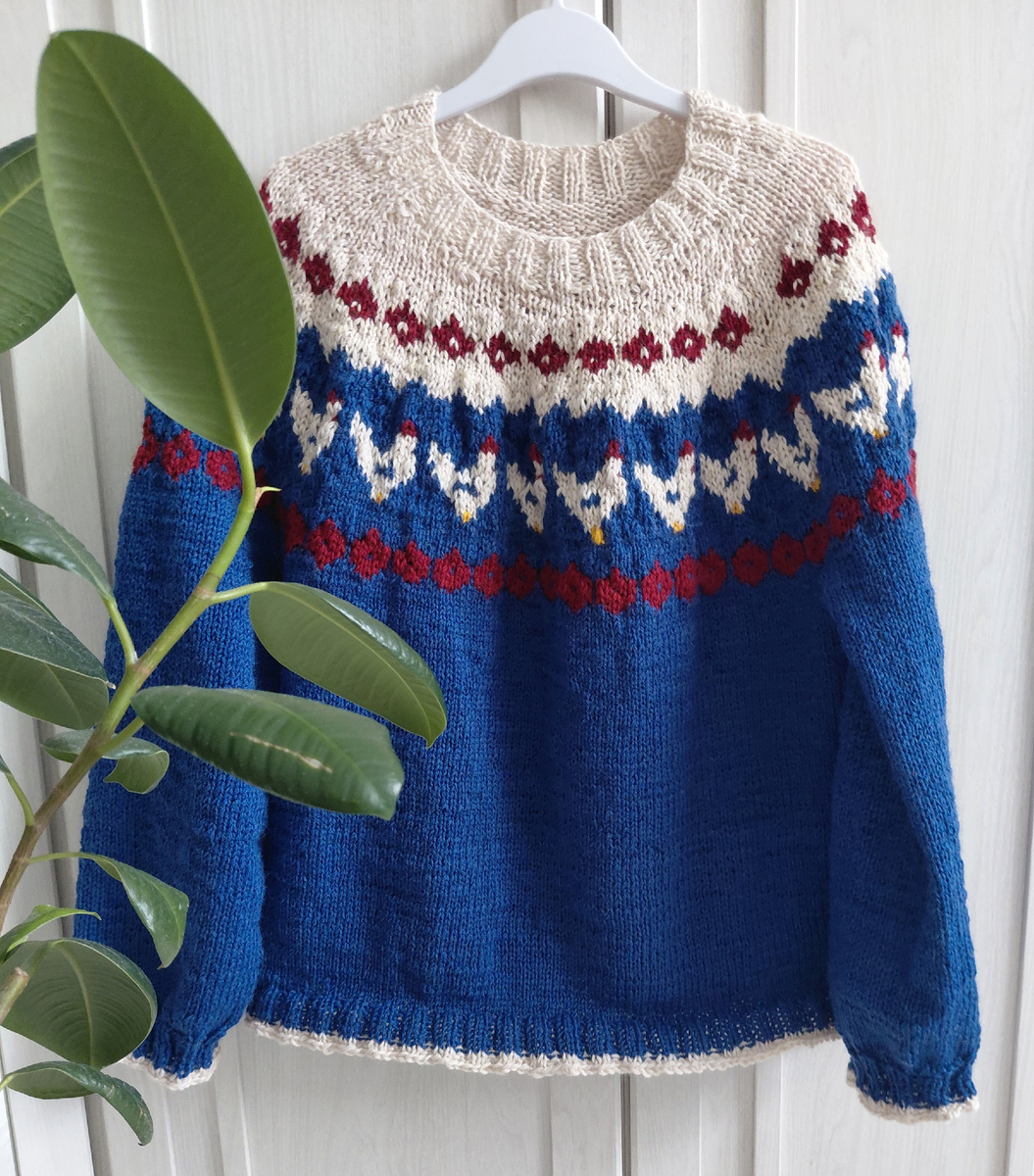 Я просто в восторге от своего джемпера. Назвала я его "дачный с курочками"