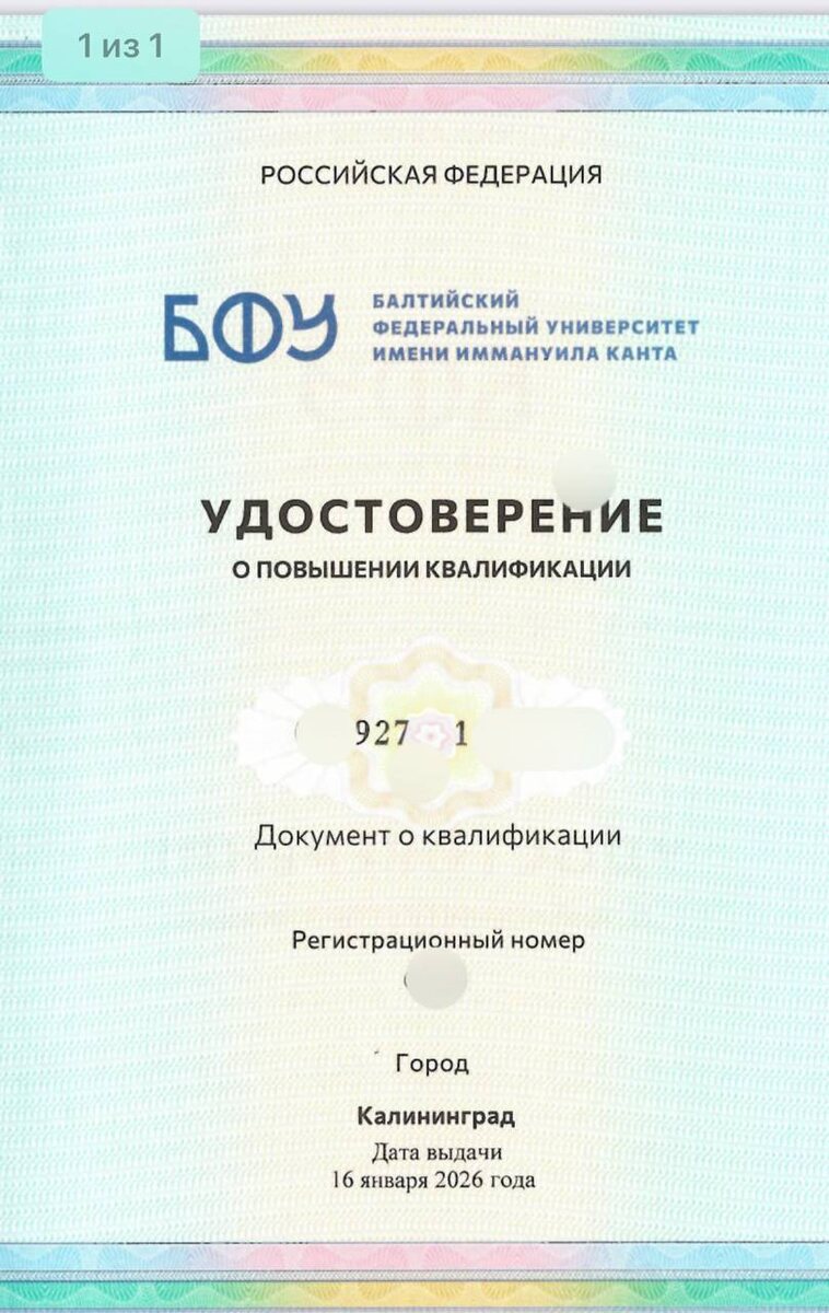 Наконец-то пришла корочка от Балтийского федерального университета им