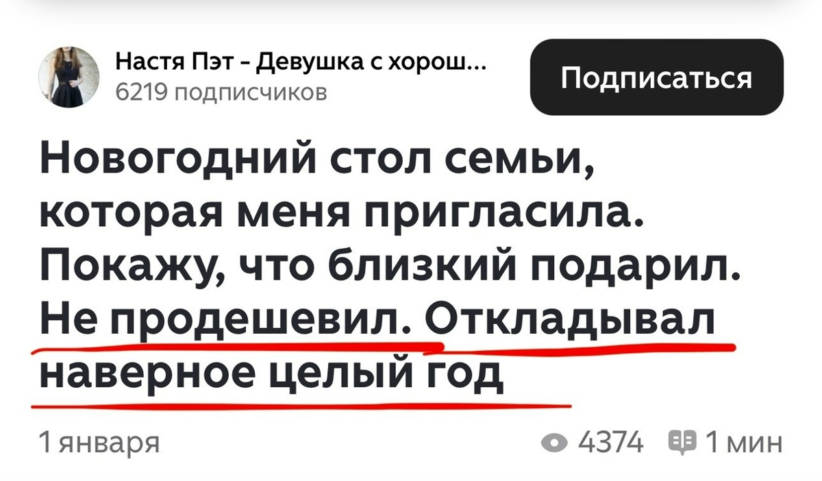 Зачем она вкинула мысль о том, что его возможности/заработок настолько скромны, что надо копить целый год на такой подарок? Гасить своих близких это сильно... На мужчин в паре в целом обычно накладывается ожидание и обязательство помогать материально своей женщине. Ведь женщина в будущем мать, а мать с грудным ребенком должен кормить отец семейства. В связи с этим, аудитория кусает молодого человека Н., а она лайкает комментарии, где стоит нарратив - тебе должен помогать твой мужчина материально,а в идеале содержать.