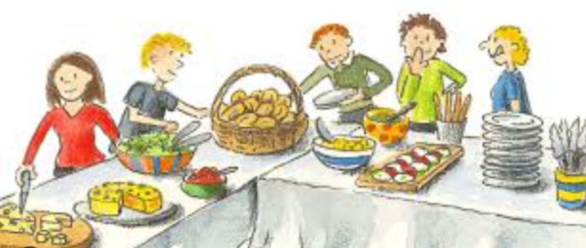 Брать порции следует понемногу, используя специальные приборы для каждого блюда, не спешить, не перебирать еду руками и не использовать свои приборы для накладывания.