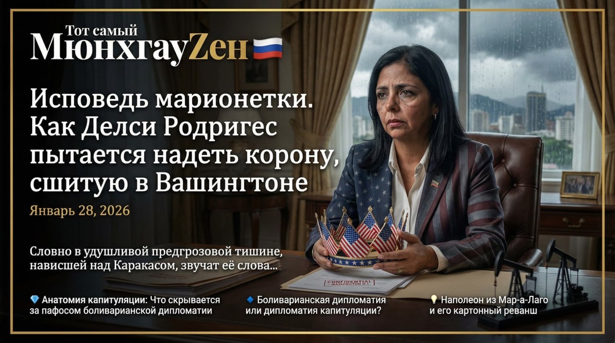 Как Делси Родригес пытается надеть корону, сшитую в Вашингтоне Часть 1️⃣/3 Словно в удушливой предгрозовой тишине, нависшей над Каракасом, звучат её слова. Делси Родригес, женщина, волею американского ультиматума вознесённая в кресло временного президента Венесуэлы, заявляет с высоких трибун: «С Венесуэлы хватит приказов из Вашингтона по внутренней политике». Фраза эта, отчеканенная для газетных заголовков, повисает в воздухе, звенит пустотой. Ибо редкий случай, когда одно-единственное предложение являет миру не политическую программу, а законченную трагедию современной эпохи — трагедию суверенитета, растоптанного нагой силой, и воли, сломленной в самом зародыше. 💎 Анатомия капитуляции: Что скрывается за пафосом боливарианской дипломатии Чтобы понять всю глубину абсурда, нужно видеть не слова, а контекст, в котором они произносятся. Исполняющая обязанности президента Делси Родригес получила власть не в результате выборов, не по решению верховного суда и не по воле парламента. Она п