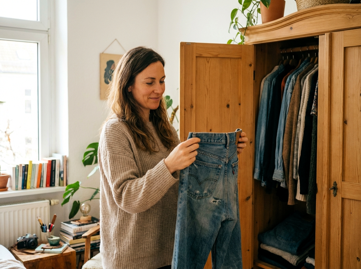 У каждой женщины в шкафу есть такая вещь. Не модная, не дорогая, а просто своя. Та, которую рука не поднимается выбросить. У Марины это были старые джинсы-«трубы». Синие, выцветшие до белесого оттенка на коленях, с потёртой бахромой внизу. Она купила их на последнем курсе института, когда вместе с Лёшкой, её тогда ещё просто другом, жили свою беззаботную студенческую жизнь. В этих джинсах он впервые взял её за руку на набережной. В них же она приехала к нему на съёмную квартиру-«матрешку», когда они решили жить вместе. Сейчас Марине было тридцать восемь. Квартира, машина, дочь-подросток, которая морщила нос: — Мам, это вообще позор! Выбрось наконец эти лохмотья! Марина не носила их. Но выбросить — не могла. Они лежали на верхней полке, свёрнутые в аккуратный рулон, как музейный экспонат. Её талисман, ниточка в ту юность, где они с Лёхой были не родителями и добытчиками, а просто двумя влюблёнными дураками. И вот настал день великой уборки. Марина выгребала хлам из шкафа с решимостью по
