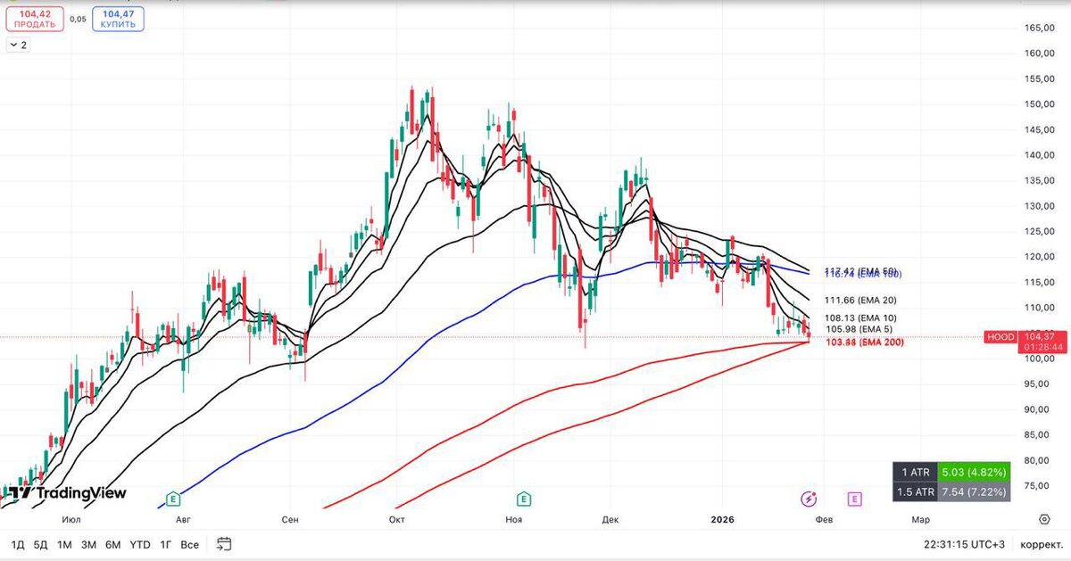 $HOOD на 200 EMA - SMA D