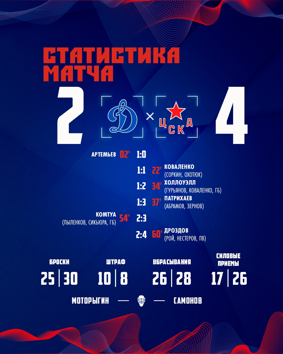 Столичное дерби между московским «Динамо» и ЦСКА, состоявшееся 28 января 2026 года в рамках регулярного чемпионата Фонбет КХЛ, завершилось победой армейцев со счётом 4:2.
