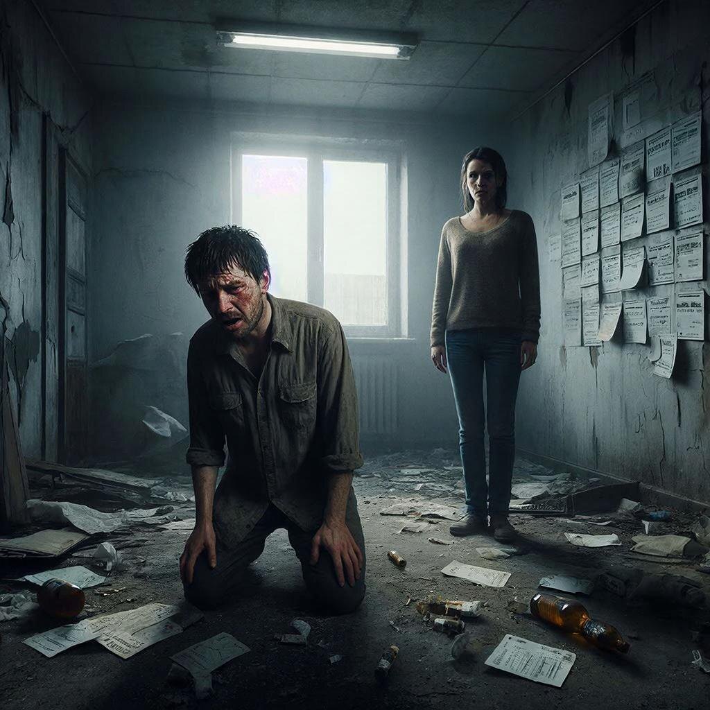 Квартира была пуста. Совершенно. Ни дивана, ни телевизора, ни старого холодильника, который вечно шумел. Даже обои местами были ободраны. На паркете лежали только окурки и пустые бутылки. И на самой заметной стене, прямо напротив входа, были ровно, как на выставке, приклеены скотчем пятнадцать листов. Пятнадцать счетов, уведомлений о займах, с подробным расчётом задолженности, процентами и угрожающими надписями «СРОЧНО ОПЛАТИТЬ».