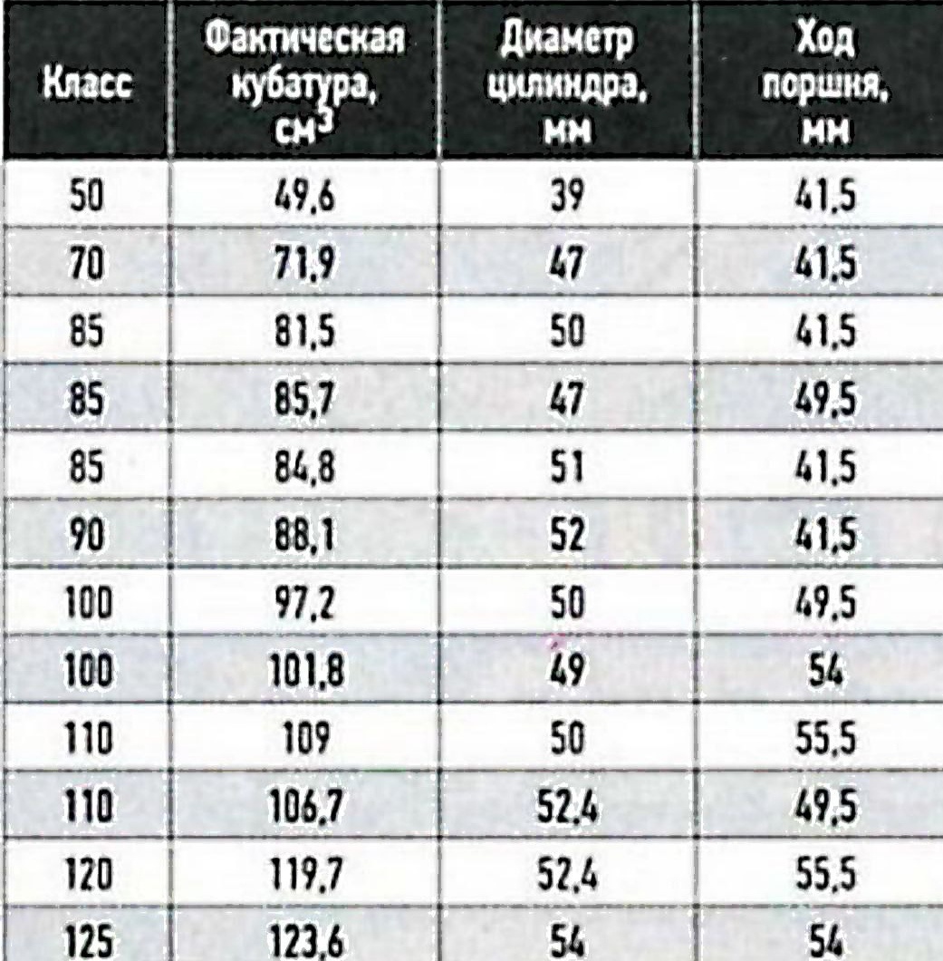 Рабочий объём и размерность <кубовских> моторов китайского производства