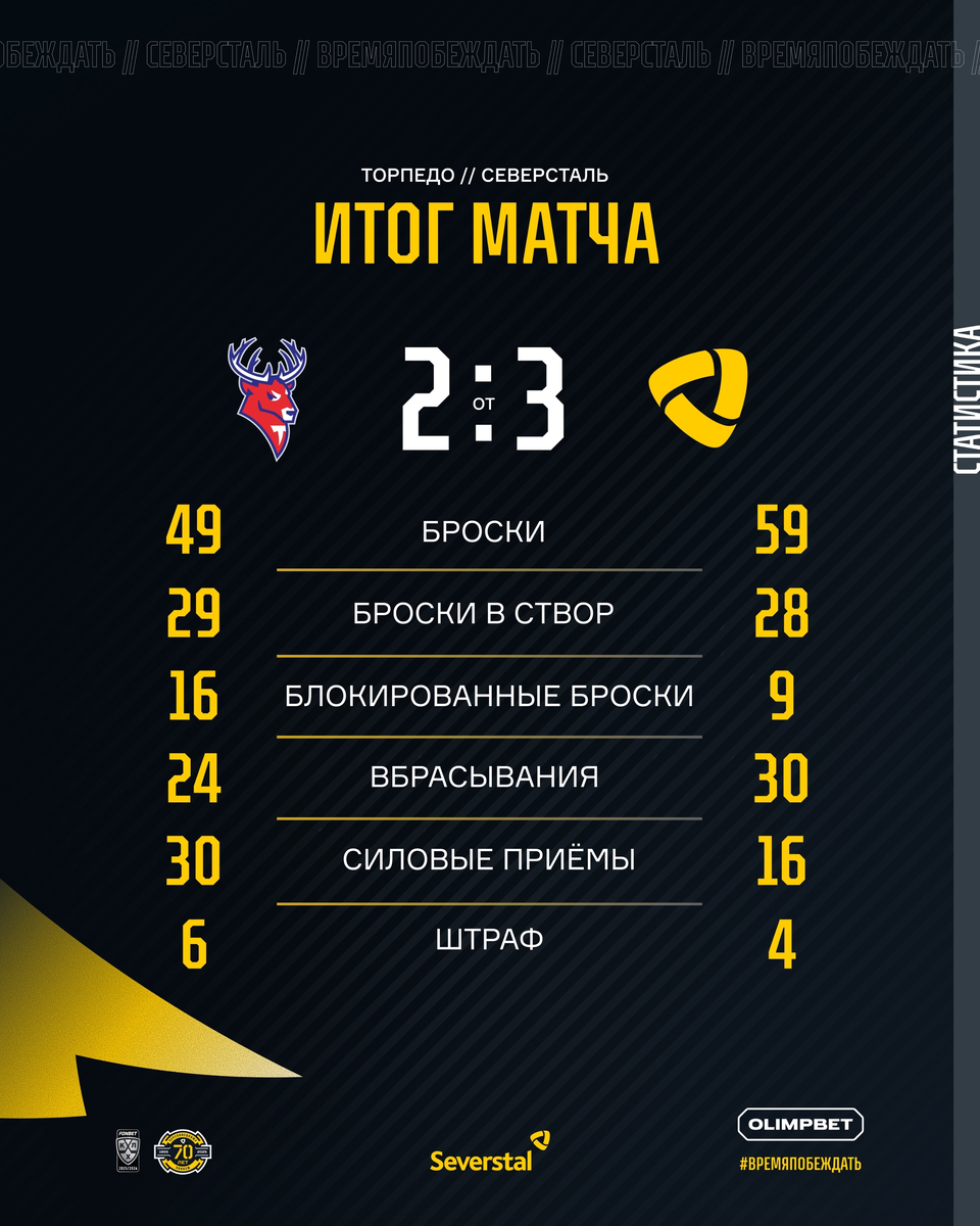 Матч регулярного чемпионата Фонбет КХЛ между нижегородским «Торпедо» и череповецкой «Северсталью», состоявшийся 28 января 2026 года, получился упорным и завершился лишь в дополнительное время. Победу со счётом 3:2 после овертайма одержали гости.