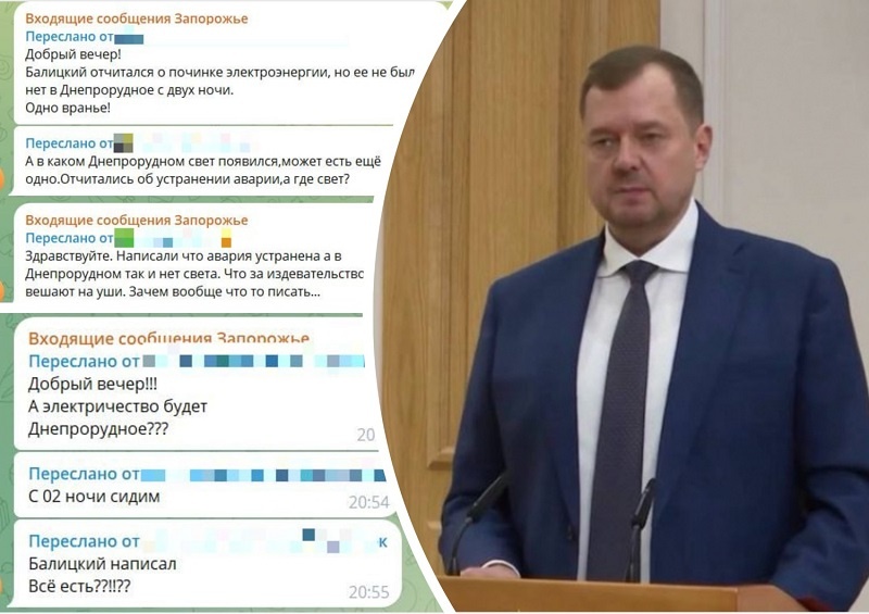 Днепрорудненцы обвинили во лжи Балицкого, заявившего о восстановлении электроэнергии. Утро 28 января у жителей города Днепрорудное Запорожской области началось с отсутствия света. Во всяком случае, о том, что электричество внезапно пропало в Васильевском, Михайловском и Весёловском округах, сообщили энергетики именно утром. Но на деле, со слов днепрорудненцев, света у них не было уже с двух часов ночи. В связи с этим редакция «Блокнота» обратилась в администрацию Васильевского округа, в который входит этот прифронтовой город, и получила следующий ответ: «25 230 абонентов остались без электроснабжения в Михайловском, Васильевском и Весёловском округах Запорожской области. Причины отключения уточняются, аварийные бригады уже работают над восстановлением электроснабжения. Более точную причину энергетики пока не сообщали». Таким образом, люди остались без света, без причин его пропажи и без примерных сроков возвращения. Позже стало известно о том, что из-за порыва квартального магистрально