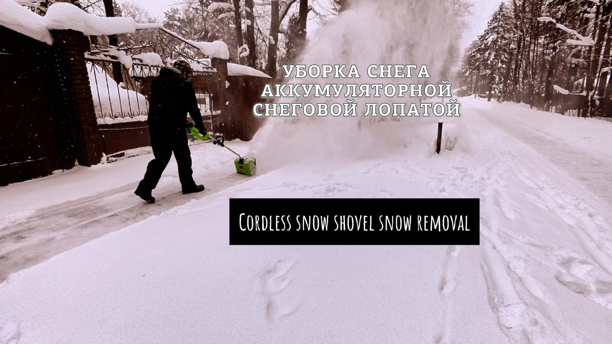 Уборка снега с парковки с помощью аккумуляторной снеговой лопаты
