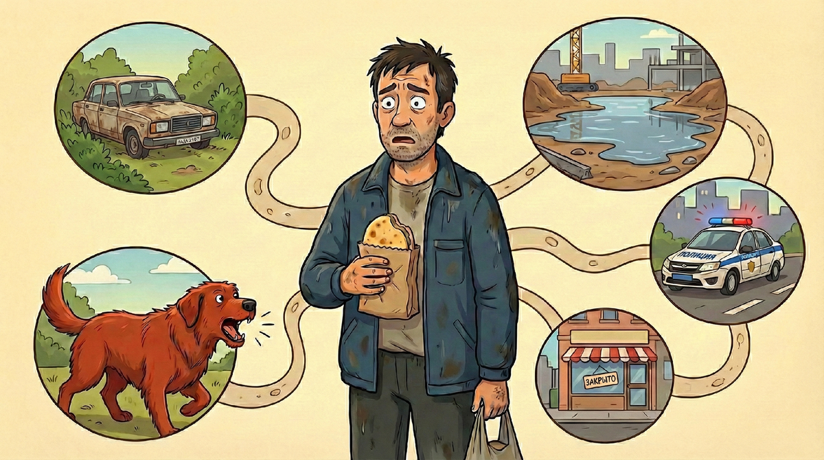 Ну да. Собака. Полиция. Папа в луже. Для восьмилетнего — идеальный день. Для сорокалетнего — повод задуматься о доставке продуктов. К слову, приложение «Самокат» я скачал в тот же вечер.