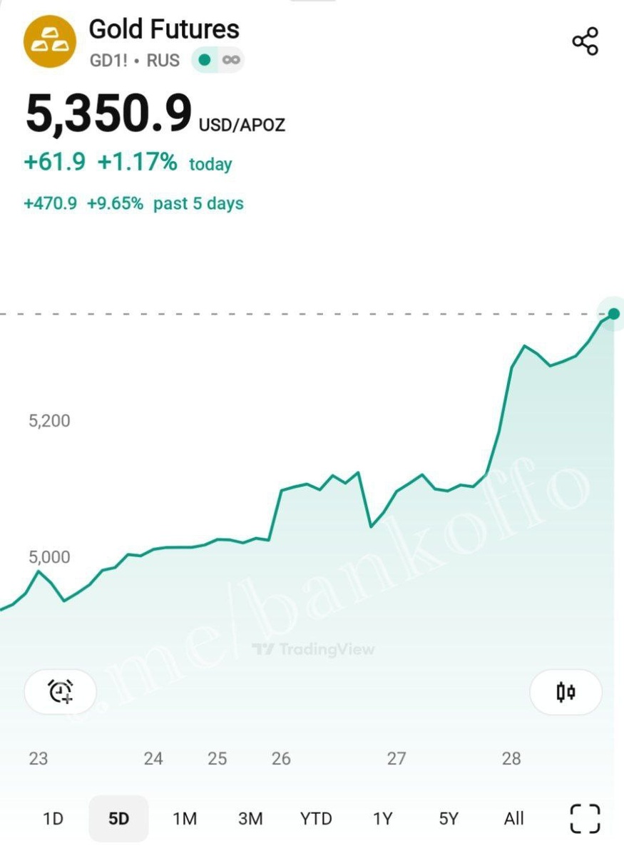 Сейчас за металл отдают больше $5350. С начала года он подорожал на 18%. ИнфоСплетник ────────── ⚡️Важные новости – без лишнего шума!⚡️ Подпишись на канал и получай только суть: оперативно, чётко, по делу! 👉 ИнфоСплетник | @infospletnik