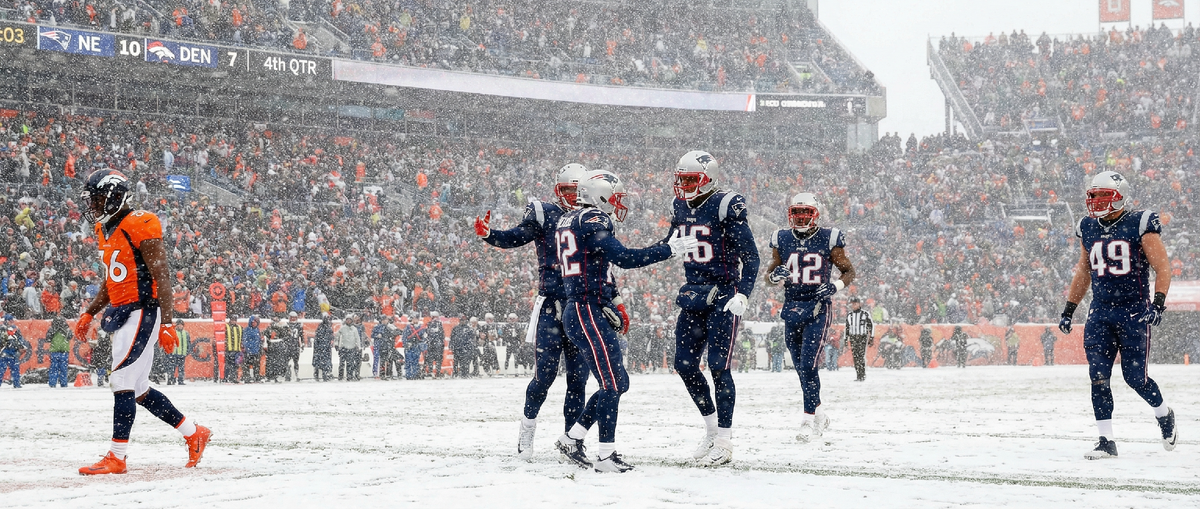 Едва Новая Англия повела 10:7 как повалил снег, не оставив Денверу шансов отыграться.
