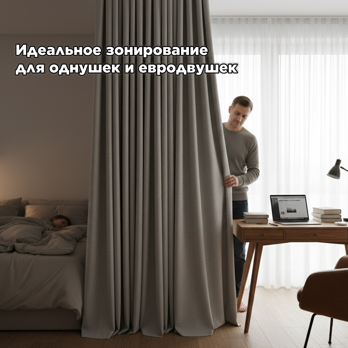Разделительные шторы 3-в-1: идеальное зонирование для однушек и евродвушек