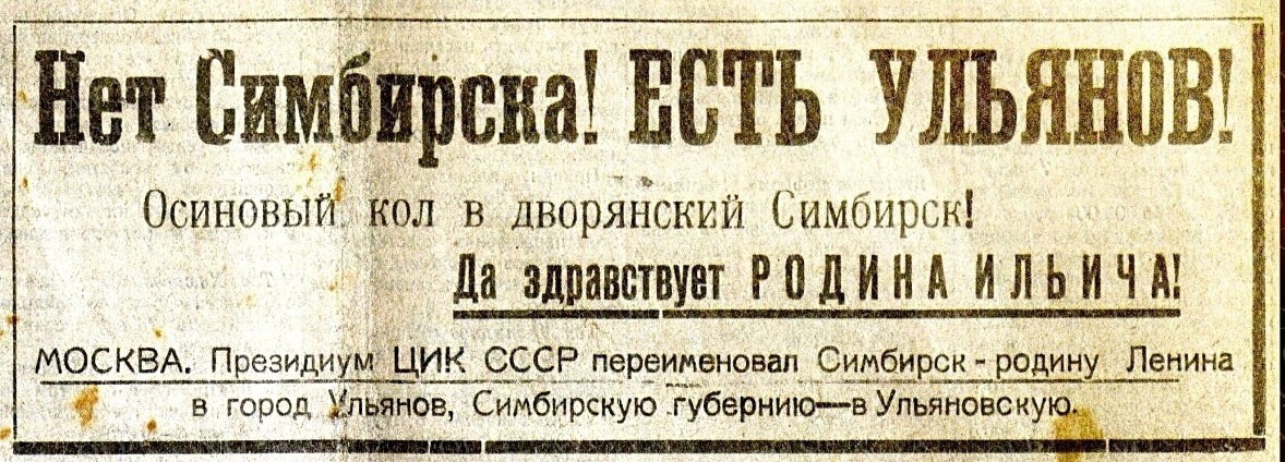 «Нет Симбирска! Есть Ульянов! Осиновый кол в дворянский Симбирск! Да здравствует родина Ильича!» - писали в газете «Пролетарский путь».
