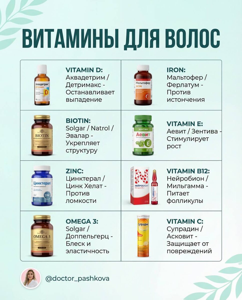 «Какие витамины попить для волос?» — топ-1 вопрос в моих сообщениях. Сразу после «а это точно не от стресса?» Окей. Давайте разберём, как пить витамины так, чтобы они работали, а не просто делали вашу мочу дороже. Правило №1: Сначала анализы — потом аптека Пить «что-нибудь для волос» без понимания, чего именно не хватает — это как заправлять машину наугад. Бензин, дизель, а может, керосин? Авось поедет. Минимум, который стоит проверить: ↳ Ферритин (не гемоглобин — ферритин!) ↳ Витамин D ↳ Цинк ↳ B12 и фолиевая кислота ↳ ТТГ, Т4 свободный Правило №2: Формы имеют значение Железо в виде сульфата — здравствуй, запор и чёрный стул. Железо в виде бисглицината — совсем другая история. Витамин D без К2 — кальций пойдёт куда угодно, только не в кости. Цинк на голодный желудок — привет, тошнота. Детали решают всё. Правило №3: Время приёма — не прихоть ↳ Железо — утром, натощак, с витамином С. Не с кофе! ↳ Витамин D — с жирной пищей (он жирорастворимый, если что) ↳ Магний — вечером (бонус: улу