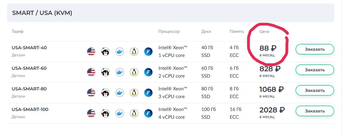 Сейчас для очередного проекта понадобился сервер, и тут у меня 2 варианта на выбор Hostland или Fastvps, с первым работал лет 10 точно, с Fastvps еще дольше. И обнаружил, что у них USA сервера сейчас по 88 рублей сдаются, ничего себе. Это не какие-то демо серверы, это не мертвые железки, у меня таких 3 штуки арендованы под полноценные клиентские проекты уже 3 месяца, (скрин приложил) где крутятся интернет магазин, инфобиз-проект с сайтом, бекендами, ботами и тд, и отдельный сервер под телеграм ботов в регионе USA. Скорость в порядке. В чем удобства региона USA - для проектов с ИИ не придется устанавливать прокси и прочие обходы, чтобы банально подключить open router и прочих провайдеров. Не будет проблем с подключениями. Можете налетать, если хотите сэкономить. Они часто пишут, что осталось якобы 4 шт, на деле периодически они опять появляются, слежу за тарифами уже давно. 🔗 Ссылка (не реферальная).
