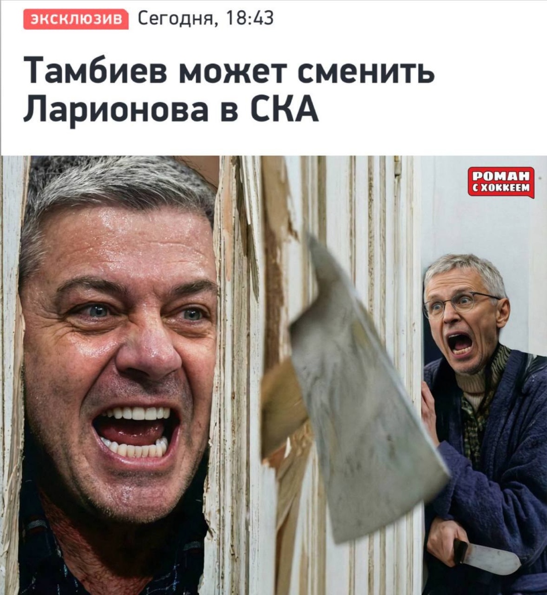 В связи со слухами, что в СКА Игоря Ларионова может сменить Леонид Тамбиев, в "Телеграме" уже гуляет вот такой мем... #минутка_юмора