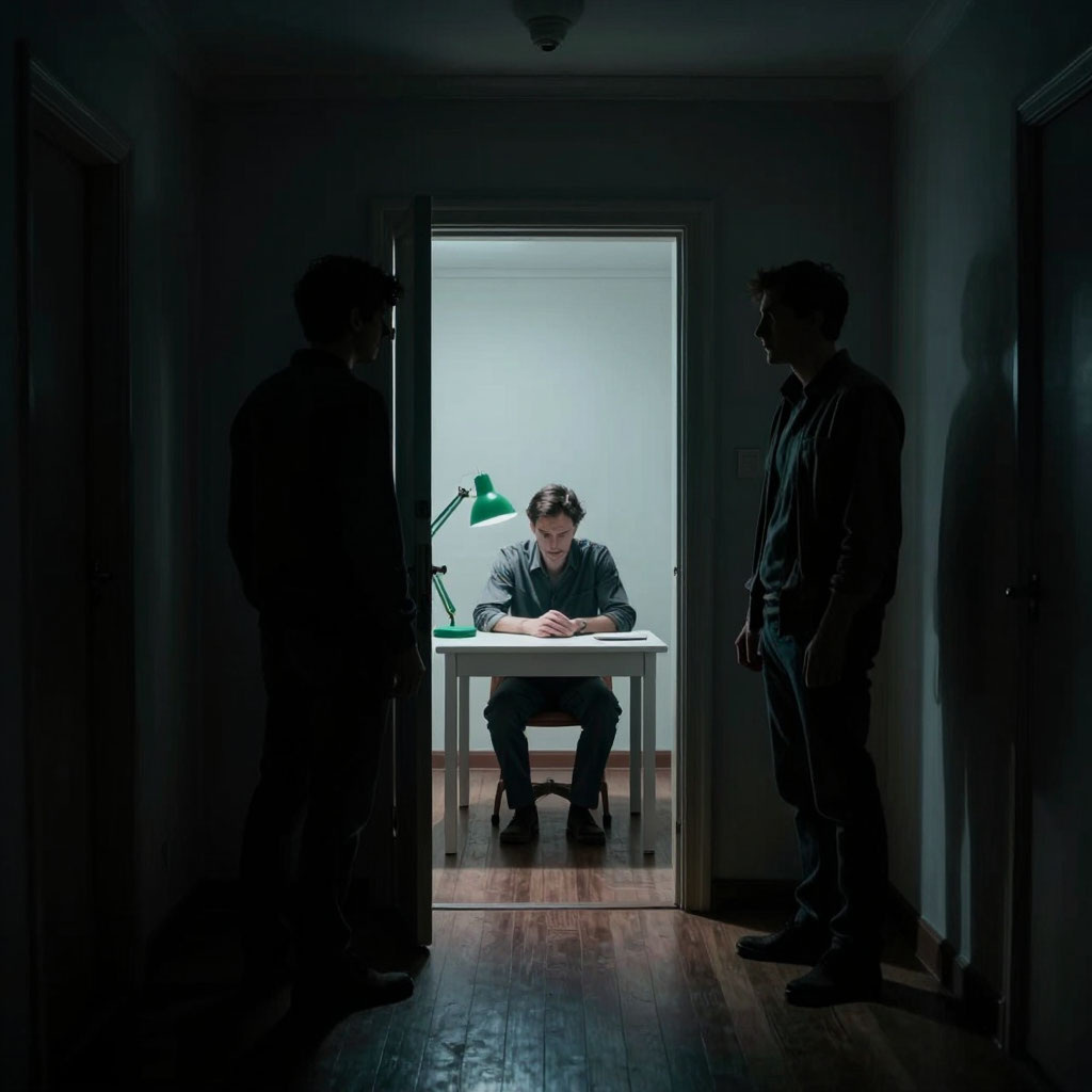 Ноги подкосились, но я сел. Рациональная часть мозга - та, что цепляется за реальность, - судорожно выдала объяснение: стресс, галлюцинация, расщепление. Всё, что угодно, лишь бы не признавать очевидное.